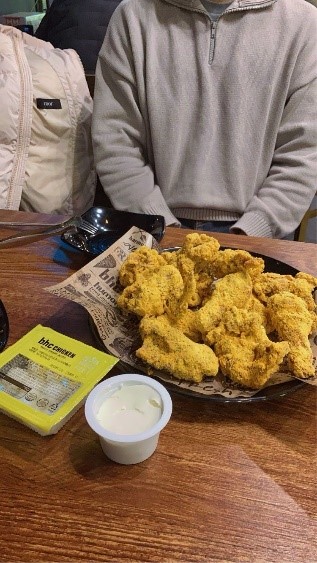 その日は、韓国で有名なonionというカフェに行き、夜ご飯はBHCチキンを食べに行きました。両方とも初めて行ったのですが、パンもチキンも美味しくて感動しました。情報に無知な私に色々教えていただきました。