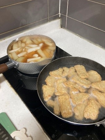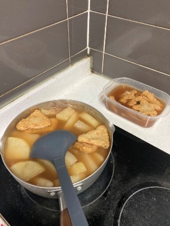 外がとても寒いので、家では、おでんやお鍋など暖かいスープ系の食べ物を作ってルームメイトと食べています。フェギ駅の近くの八百屋さんでは、野菜が安くて(人参が三本100Won(現在レート:135円程度))、手軽に手に入るので、多く作って共有厨房のお世話になっている方々に持っていったり、同じ寄宿舎のお友達におすそ分けしています。