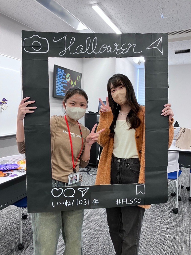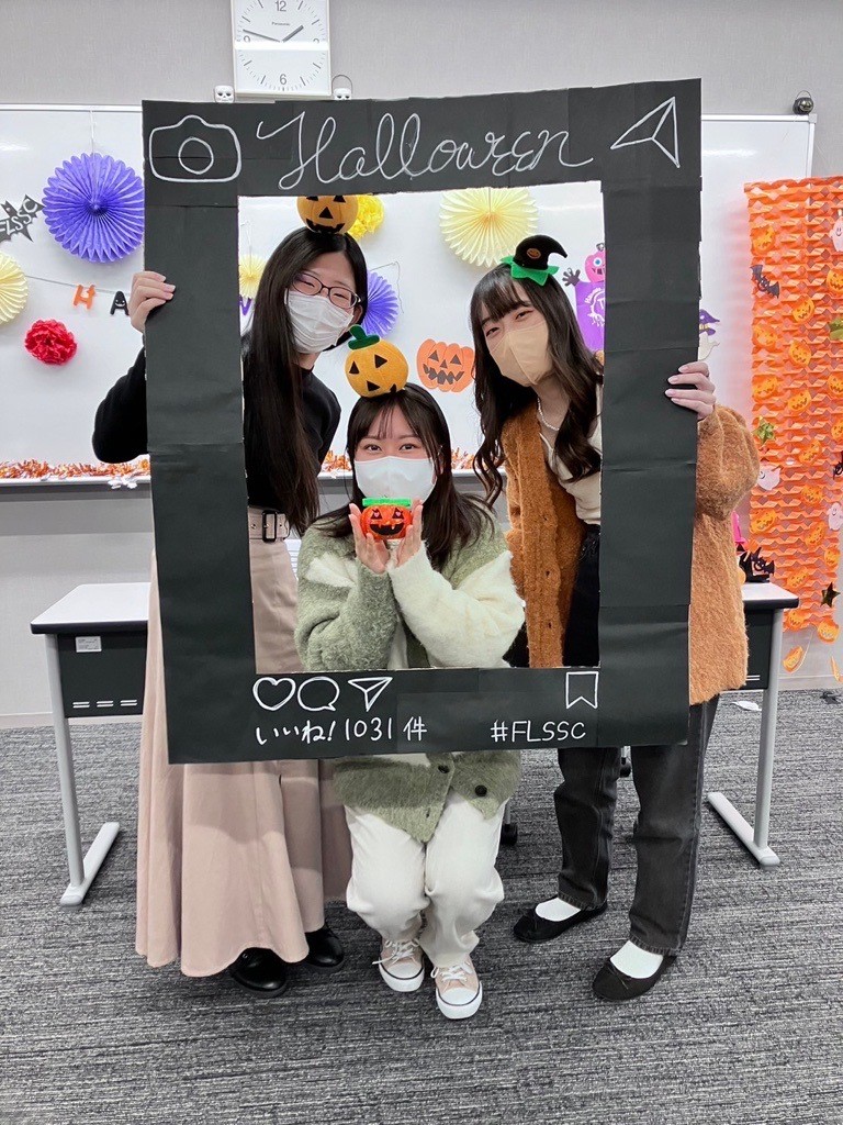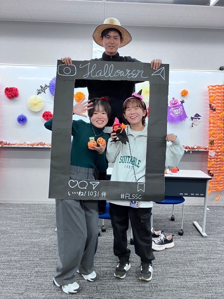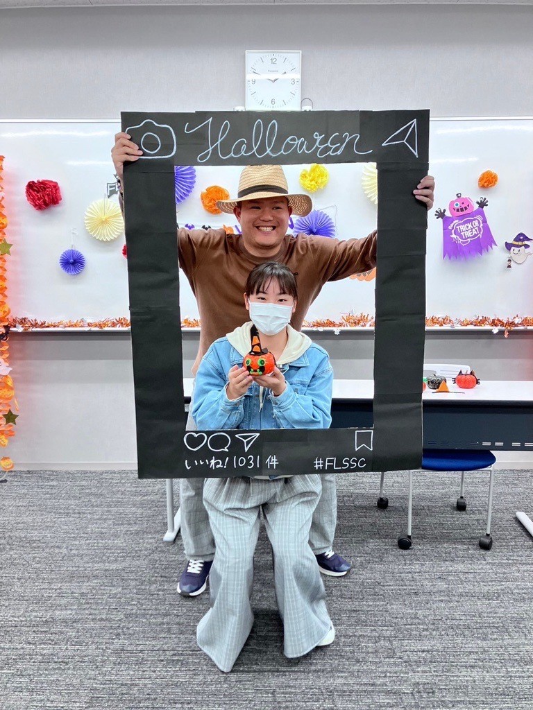 ・ジャック・オー・ランタン作りでは、グループそれぞれが独特なものを作っていました。作り終わった後に段ボールで作ったインスタフレームを利用して写真撮影をしました。とても盛り上がりました。
