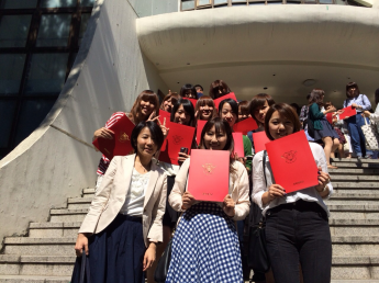 修了証書を手に(キョンヒ大学国際教育院の前で)