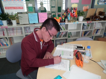 また、参考書なども豊富に取り揃えており、今は韓国語・スペイン語・中国語共に検定受験日が近づいているので、多くの学生が活用しています。
