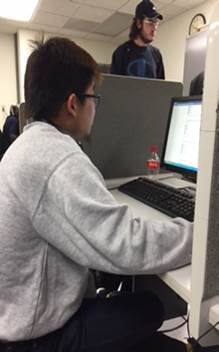 Language Lab という授業はパソコンを使って教授から出される問題を解いています。仕切りがあり、1人の空間ができているので集中して問題に取り掛かることができます。