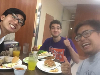 ランチの時間は午後の授業があるので、長くゆっくりできる暇がありませんが、カフェコートにいる間はブラジル人やアメリカ人の人たちと楽しく会話しながら食事をしています。また、フードメニューも充実していて、美味しさには充分満足しています。