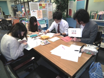この日は中国語検定が次の週にあったこともあり、学生が試験問題の質問に来ていました。みんな真剣な表情で取り組んでいます。