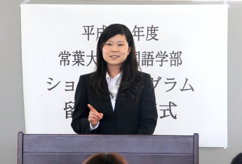 英語圏は藤森茉由子さん(英米語学科2年)が代表として英語で挨拶。