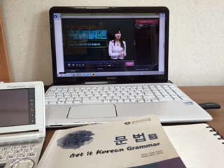 「マスターコリアン」という教材で、パソコンや携帯電話で手軽に語学堂の先生の講義を受けることができます。私が考えるオンライン授業の利点は2つあります。