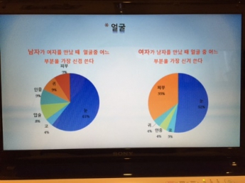 円グラフや画像を使って分かりやすく発表。私は韓国語の数字の発音が苦手なので発表で苦労しました。