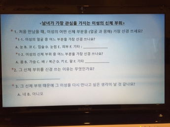 私のグループは「初対面の異性に対して、どの部分が気になるか」という調査を行いました。調査方法はインターネットと街頭アンケートを行い、街頭アンケートでは最寄り駅前で韓国人15人を対象に行ったのですが、見ず知らずの韓国人へ韓国語でアンケート協力を求めるのが想像以上に大変でした。日本でも行ったことのなかった街頭アンケートを外国で行ってみて、言葉の壁を改めて感じたのはもちろんですが、何事も恐れてやらずに終わらせるのではなく、まず挑戦する勇気を持つ大切さを学んだように思います。
