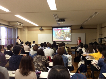 当日は、約80人の学生が熱心に参加し、英語での説明に熱心に耳を傾けました。