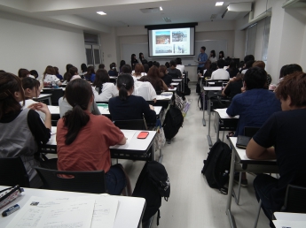 発表会では、昨年度留学した学生たちが、写真や映像を見せながら体験談を語ってくれました。