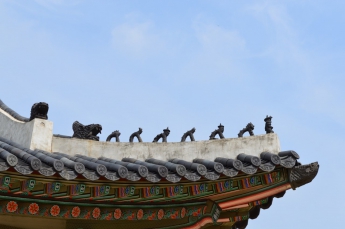 これは康寧殿(ガンニョンジョン)という国王と王妃の生活していた建物の1つで、屋根に動物のような不思議な石像があったので、撮影しました。