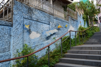 梨花(イファ)壁画村という路上美術館で、壁や階段に絵が描いてあって思わず写真を撮ってしまいたくなるかわいらしいところです。