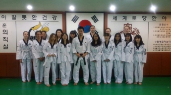 「文化体験の授業が始まりました。参加自由の授業で、テコンドーか단소と呼ばれる笛のどちらかを選択し、学ぶことができます。私は週2回、韓国語の授業が終わった1:45~3:00までの間、テコンドーを学ぶことにしました。なかなか難しく、翌日は筋肉痛になったりもしましたが、初めて習うことがたくさんで面白いです。」(宮田さん)