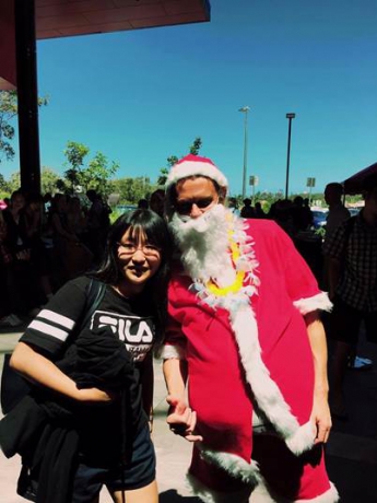 GELIでの放課後クリスマスイベントです。サンタのコスプレをした先生と写真を撮ったり、学校が提供するサンドイッチやお菓子を食べたりしました。楽しかったです。