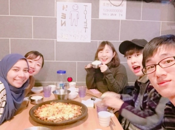 「冬学期が半分終わりました。気温はものすごく低くなり、最低気温がマイナス10度になるくらいです。静岡では滅多に降らない雪も降るので楽しいです。年末に日本から友達が旅行で来ていたので一緒に買い物をしたり、ご飯を食べたりしました。時間は少なかったですが久しぶりに会えたのでとても嬉しかったです。お互い今の状況についても報告し合えたので、私ももっと頑張ろうと思いました。クリスマスは学校の友達とパーティーをしました。外国人の友達と集まると外国の知識も聞けて、私たちも日本について韓国語で説明するのでとてもためになります。」(鈴木さん)