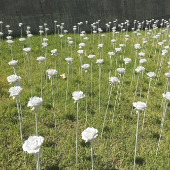 夜になると公園内にある白いバラが光りとても幻想的です。