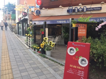 ソファーが多い音楽もかかっているカフェでゆったりと心地よい時間を過ごしたり、内装が可愛いカフェでは飲み物を2つ頼むと-500ウォン(¥50)、3つ頼むと-1000ウォン(¥100)とお得にコーヒーを楽しんだりしました。