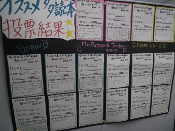 掲示されている投票用紙には、それぞれの本を選んだ理由や感想が書かれています。