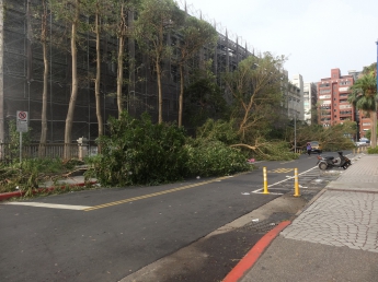 8月9日、台湾を台風が襲っていました。渡台できるのか心配していましたが、無事に松山空港に到着できました。EVA航空の方々が頑張って下さったようで、感謝感謝です!ワクワクしながら松山空港を出てみると、台風による被害が目に入りました。木が倒れ、屋根が落ちているなど、その光景に驚きました。そして、タクシーで銘伝大学の宿舎に到着すると、この日は自由行動となりました。