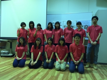 今回のオープンキャンパスにあたり、保健医療学部では在校生13名がボランティアとして協力してくれました。みんな、いい笑顔ですね!