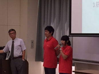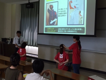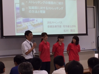 そして在校生や来校者も一緒になっての簡単な実技を交え、楽しくストレッチングについて学ぶことができました。