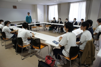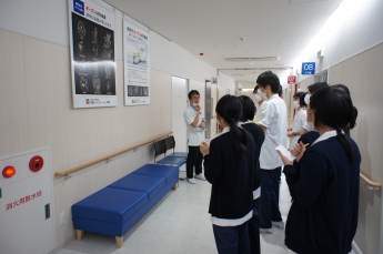 病院の概要説明にメモを取りながら、将来自分たちが働く医療の現場を見学していきます。