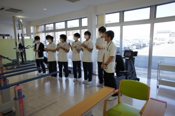 作業療法学科では1年次に臨床見学実習として、常葉リハビリテーション病院(1日)、特養とこは(5日)で実習を行います。見学が主ですが、実際に血圧を測らせて頂いたり、学生にとっては緊張する場面もあります。