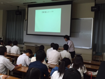 トコハホールで全体の説明の後、各学部へ移動してそれぞれの学部で模擬授業を受けました。