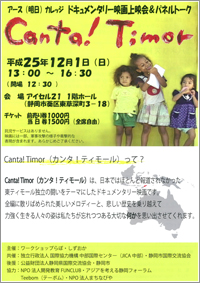 Canta!Timor(カンタ!ティモール)は、日本ではほとんど報道されなかった東ティモール独立の闘いをテーマにしたドキュメンタリー映画です。