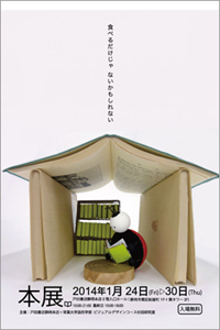 電子書籍が話題になっていますが、このまま従来の「本」は消滅してしまうのでしょうか?この「本展」では、学生たちが「本」の可能性を探り、「本」の概念を揺さぶり、「本」の原型に立ち向かう、そんな「新しい本」のデザインを提案しています。「積ん読が出来ない本」「本音と建前が違う本」「読んでる姿が動物になってしまう本」など、約20点の作品が展示されています。