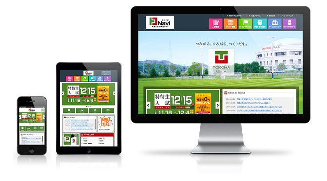 パソコンやスマートフォン、タブレットなど、さまざまなデバイスで最適な表示を行う 「レスポンシブWebデザイン」の技術を取り入れ、マルチデバイスに対応しています。