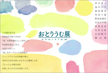 本学造形学部アート表現コース2年生が「音」を表現素材として制作した作品群を展示します。