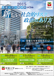 | 2015年10月29日(木曜日) 16時00分~18時30分 | 日本の地方政治 ~二元代表制の意味~ | 基調講演 待鳥聡史 京都大学大学院法学研究科教授 コメンテーター:中島一彦(静岡市観光交流文化局家康公四百年祭事業推進本部長) |