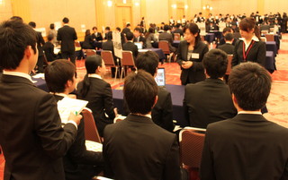 静岡県内を中心に企業約100社が参加。リクルートスーツに身を包んだ学生約250人が希望企業の情報収集に努めました。