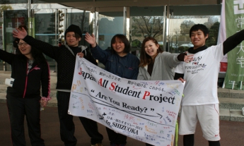 福島大の学生が中心となり立ち上げた「全国学生プロジェクト」が震災の風化を防ごうと企画したリレー。全国27都道府県の賛同者が参加、県内では富士常葉大学環境防災学部4年の山田一央さん(22)が代表となり「静岡でもできる応援をしよう」と、新年度から統合する浜松大と常葉学園大の学生らに呼び掛けて出場を決めた。