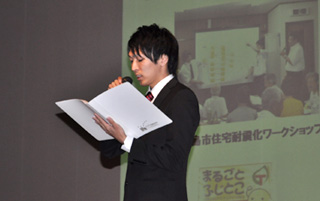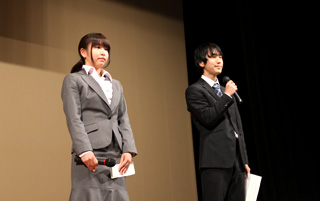 その後、教育学部4年の原田裕太さん、健康プロデュース学部4年の勝間田悠里さん、総合経営学部(現 経営学部)4年の林恭平さん、短期大学部英語英文科2年の落合綾乃さんが、代表で各キャンパスの紹介を行いました。