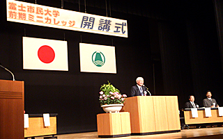 平成25年度富士市民大学「第19回前期ミニカレッジ」の開講式が5月15日(水曜日)、富士市文化会館(ロゼシアター)にて開催され、本学の西頭德三学長が挨拶をし、基調講演とオリエンテーションを行いました。