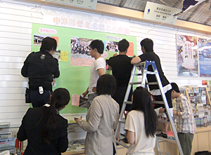 大学のキャンパスがある都田地区と、ゼミで地域活性化のサポートを行っている引佐町伊平地区にスポットをあて、ボランティア活動の写真などを展示しながら、学生の目線で浜松市北区の良さをアピールしています。