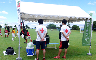 本サポートでリーダーを務めた海野好希さん(心身マネジメント学科3年)は「今回の活動は、選手の傷害予防と、発生した傷害の炎症を最小限に抑えることをコンセプトとした。捻挫や突き指などの傷害があった際に、保護者の方々にも症状を説明しコミュニケーションを取ることができた。反省点もあるので、来年のサポートに生かしていきたい」と話しました。