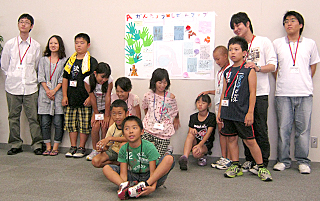 青葉台児童クラブの5、6年生18人と、児童のサポート役として社会環境学部の下田路子教授ゼミに所属する3年生7人が参加し、事業所施設の見学やビオトープなどでの自然観察、事業所内についての環境マップづくりを行い、環境保全について理解を深めました。
