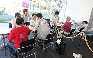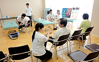 相談コーナーでは、ケガの予防(テーピング等)、肩こり腰痛(刺さない鍼等)、福祉用具(車いす・クッション等)について、専門知識をもつ教員が来場者からの相談に応じました。