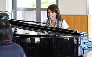 また、学生食堂では、2013年6月26日に発売したアルバム「BIRTHDAY!」より、数曲を披露。歌の中には大学を彷彿とさせる歌詞もあり、澄んだ歌声で食堂に集まった在学生を魅了しました。