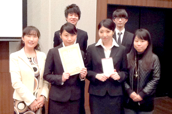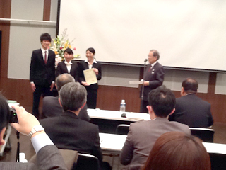 中部地区の学生による観光振興に関する研究発表「産学連携オープンセミナーin中部」が2月24日(月曜日)、名古屋市のウィンクあいちで開催され、本学経営学部の大久保ゼミ(新井美月さん、寺本麻里さん、大石純さん)が「顔晴(がんば)ろう!福島 ~静岡からの応援プロジェクト~」をテーマにプレゼンし、最優秀賞を受賞しました。