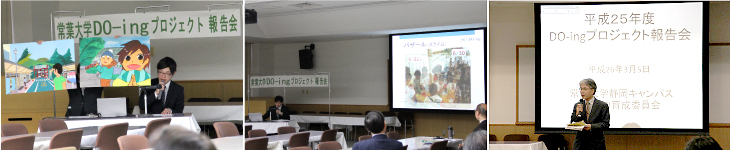 「平成25年度 Do-ingプロジェクト報告会」が、3月5日(水曜日)に静岡キャンパス瀬名校舎で行われ、各プロジェクトの1年間の活動と成果について報告がありました。