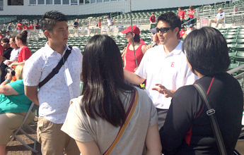 本研修では、フロリダでキャンプを行うメジャーリーグ15球団を訪問しました。中でも、メジャーリーグの昨年の覇者Boston Red Soxではクラブハウスの見学や、実際にトレーナーから学ぶ機会を得ました。傷害予防対策、コンディショニング、トレーニング方法など、実際の話を伺えました。また、選手との信頼関係の築き方など、学生からの質問に丁寧に答えていただきました。異国で戦う日本人選手や日本人スタッフとの交流に学生たちも目を輝かせていました。