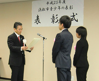 浜松市青少年問題協議会(会長:鈴木康友市長)では、地域の文化活動や奉仕活動などに積極的に取り組んでいる青少年や団体を奨励しています。