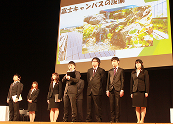 入学式閉式後には、各キャンパスの学友会から学友会の活動紹介や新入生歓迎会の案内がされ、新入生はこれから始まる大学生活に期待を膨らませている様子でした。