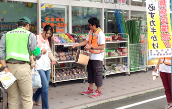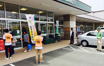 学生たちは警察官や防犯協議会のボランティアの方々とグループになり、天竜浜名湖鉄道 金指駅前の駐輪場の点検やスーパー前でチラシを配布し、自転車に施錠をするよう注意を呼びかけました。自転車盗難のほとんどは無施錠によるものが原因となっており、ちょっとした不注意が盗難につながっています。参加した学生たちは「大学の駐輪場でも無施錠が多くあるので、大学内でも注意を呼びかけたい」と防犯への意識を高める活動となりました。