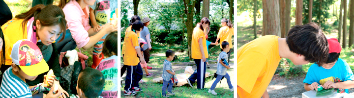 保育学部の百合草ゼミ1、2年生が、7月12日(土曜日)に富士総合運動公園にて「森の幼稚園」を開催しました。