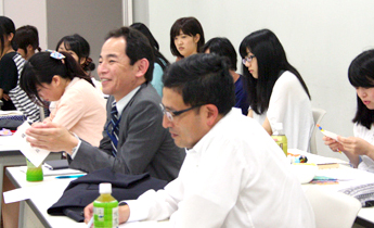 参加したのは4年生12名で、樹脂凸版(レタープレス)を用いた印刷物のデザインを提案しました。メッセージカード、しおり、コースター、アクセサリー、名言集など、レタープレスならではのユニークな作品の数々が紹介され、今後、作品を絞り込み、さらにブラッシュアップして、具体的な商品化を検討することになりました。